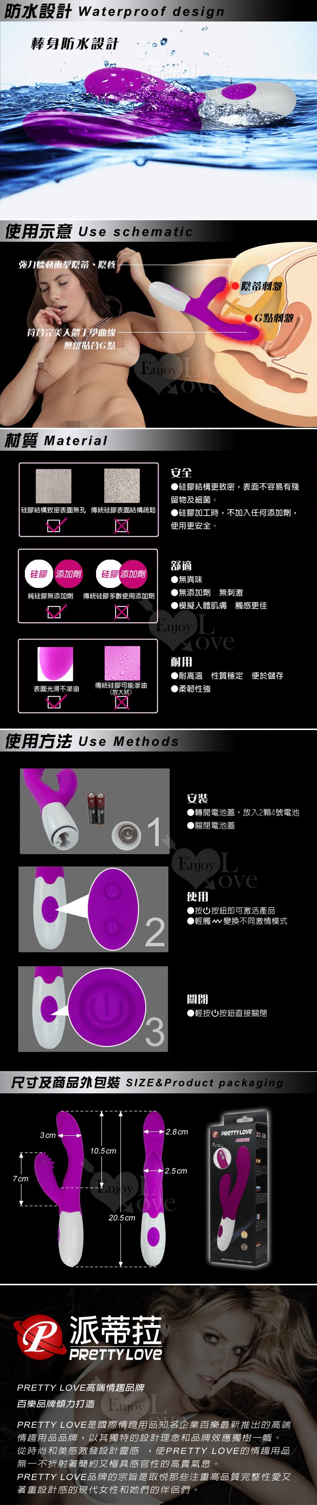 本款玩具在使用時,一端插入陰道,另外一端則置於陰蒂上面,正好兼顧內陰G點和外陰陰蒂,因此,可有效的提高女性性慾望,縮短女性高潮時間及加強高潮快感!