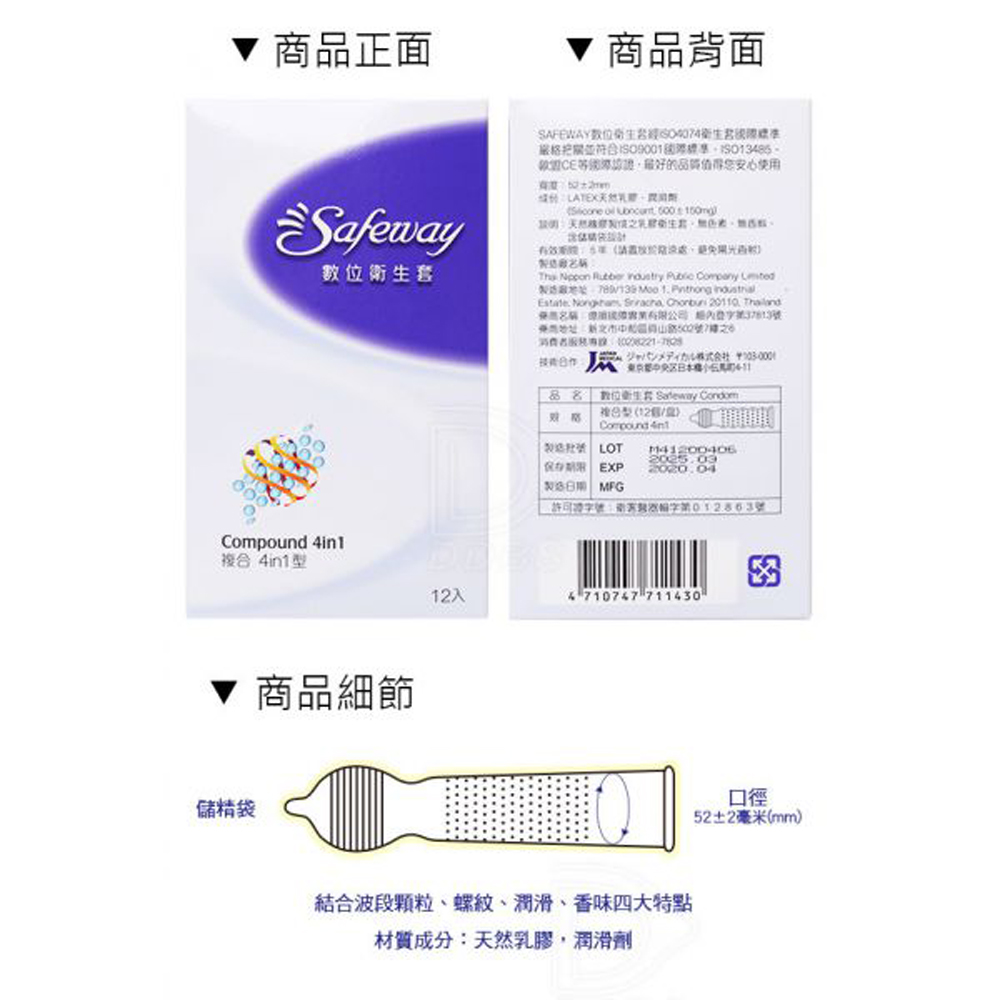 首頁>SAFEWAY 數位‧複合型4合1保險套 12入裝