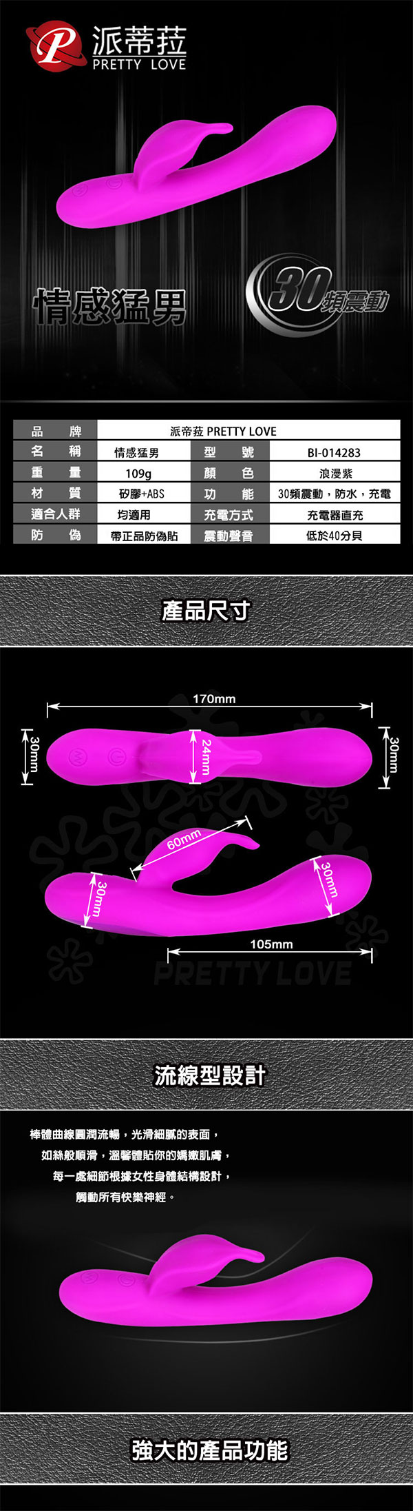 Pretty Love.Yves 30段變頻靜音防水充電式按摩棒
