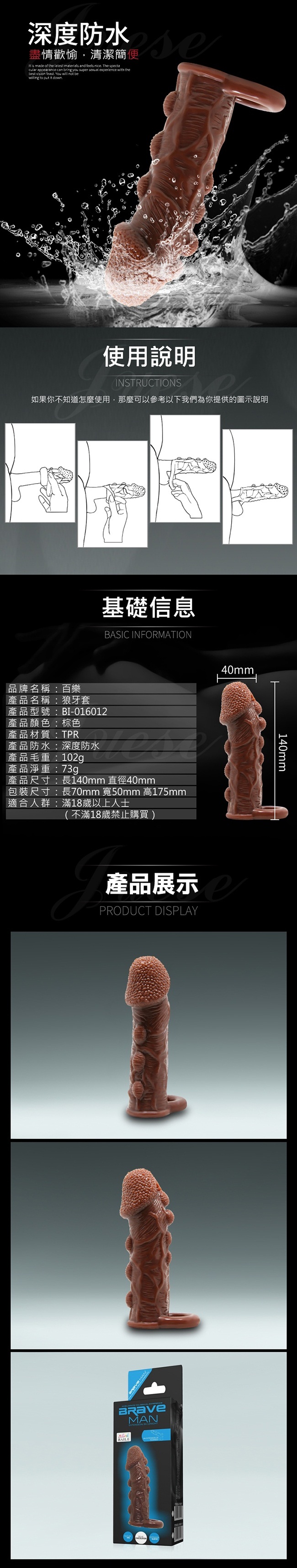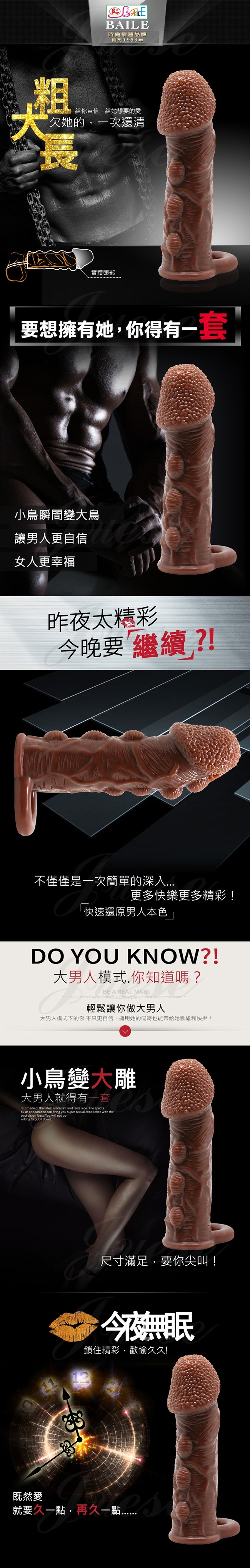 BAILE-BRAVE MAN 陰莖套蛋老二加長套-棕色C