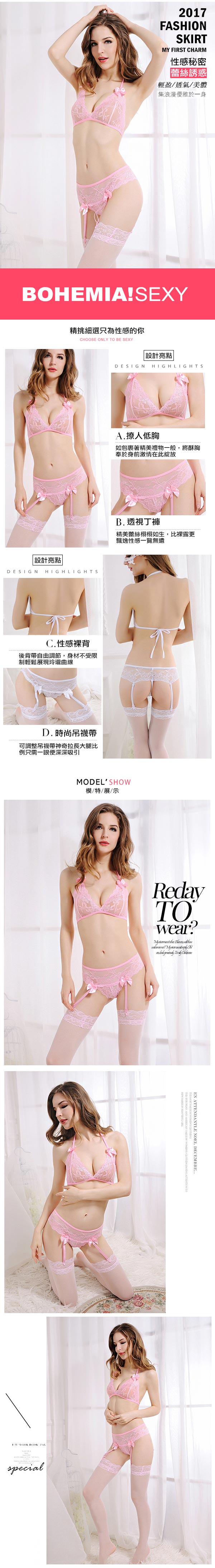 ◇◆夜魅尤物‧火辣情趣吊帶襪三件組(粉)◆◇