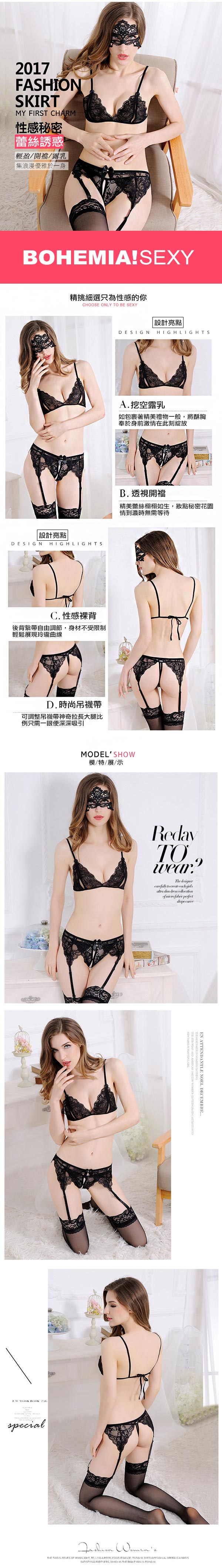 ◇◆浪漫月夜‧狂騷情趣吊帶襪四件組(黑)◆◇