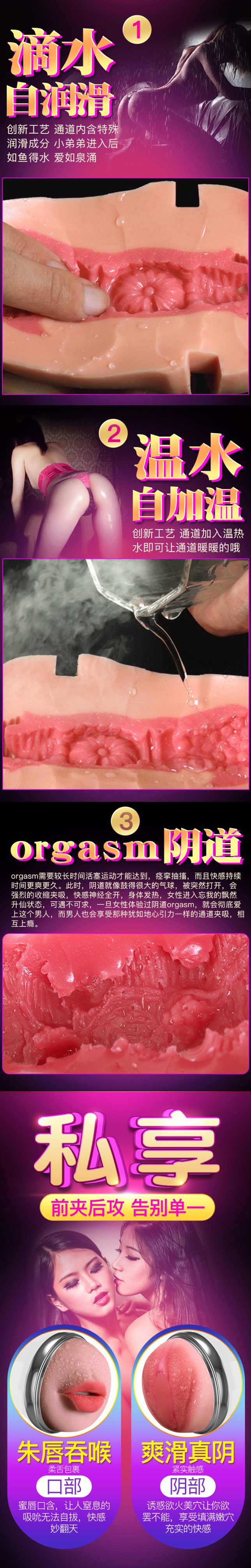口陰雙穴杯,極樂享受,這邊是柔嫩美陰的包覆,另一邊翹唇口含快感,你想來幾次她都能滿足你!
