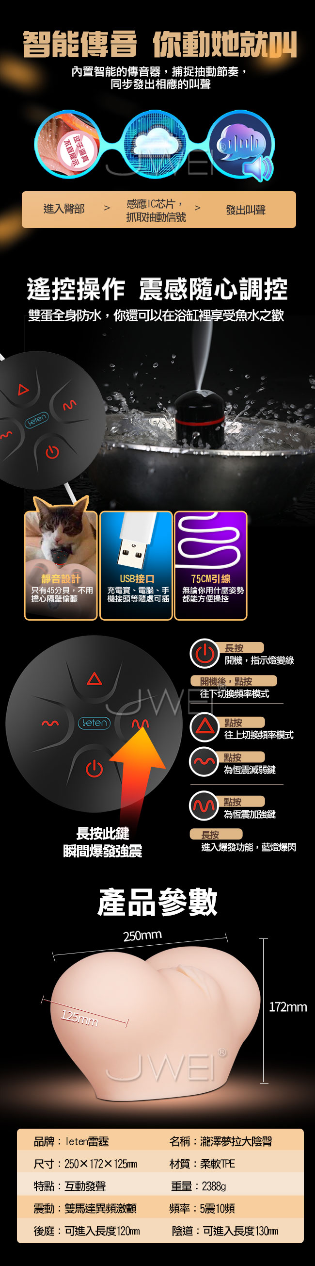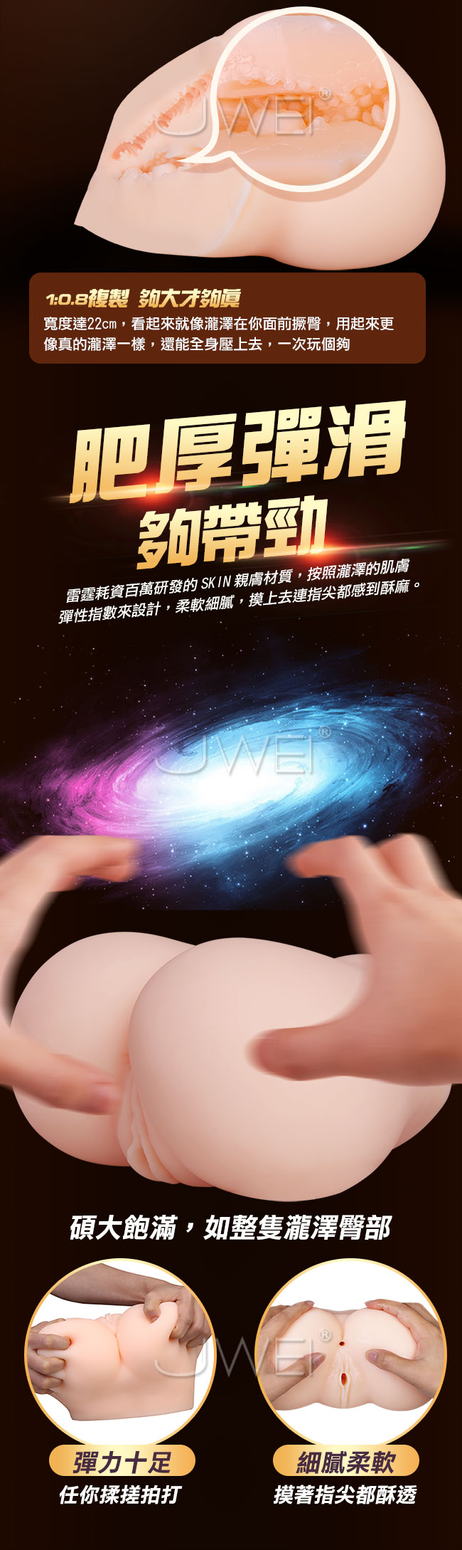 人氣AV女優瀧澤夢拉全陰臀倒模讓您幹到真的瀧澤夢拉!!特別遠赴日本1:0.8真人複製倒模,連毛孔都一樣的瀧澤美臀為的就是讓你能玩的暢快。採用SKIN親膚材質,收縮力與柔軟性極佳,一進去就吸住,抓上去又軟又滑讓您異常刺激。內部放置強力異頻雙馬達強力搖擺同時顫動,如電臀搖晃般快感使用遙控操做隨心調控。擁有真人智能互動發聲你瘋狂動她刺激叫多種情景互動任您選擇喔!高度還原前後雙穴採用內視鏡全息探測3維曲線建模,給您最真實的瀧澤夢拉。