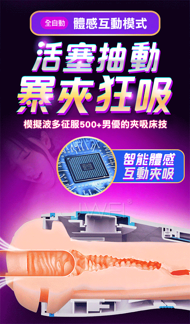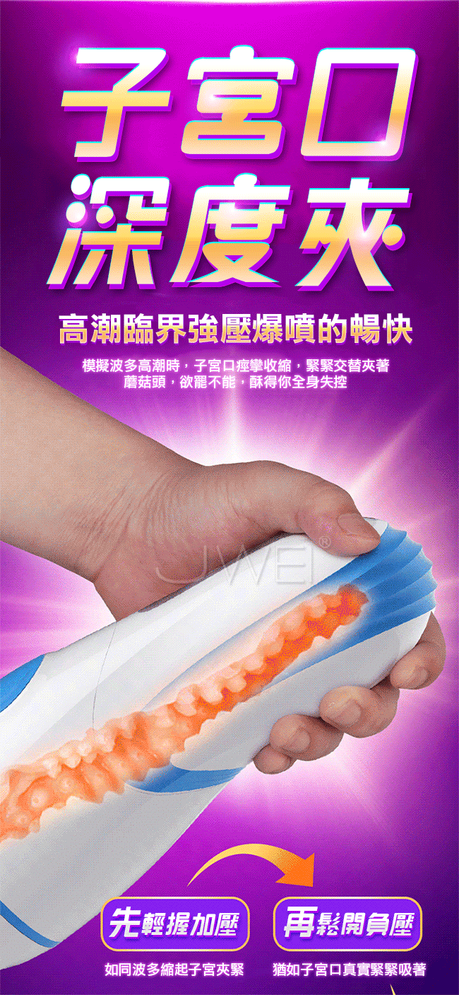 榨精神器採深淺雙替夾吸,以蜜道夾吸著你讓您深深臣服在她那高深的夾吸功力之下!開啟全自動輕柔夾吸模式,無需操控只管躺著就能享受全自動模擬女神波多的蜜夾吸。1:1還原波多私處蜜道,讓您日夜享用真女神!並且擁有智能叫床你怎麼動她就怎麼叫,全程配合你任您玩弄喔。
