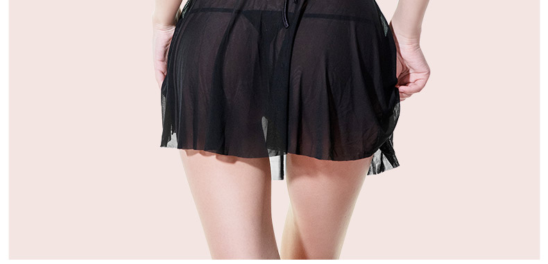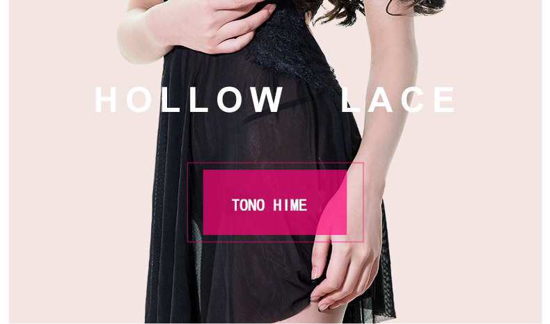 | TONO HIME【如夢】蕾絲綁帶網紗兩件套睡裙+開檔T褲(黑)