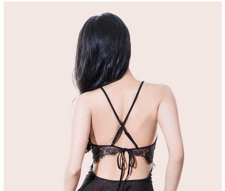 ►您現在的位置:首頁>TONO HIME【如夢】蕾絲綁帶網紗兩件套睡裙+開檔T褲(黑)