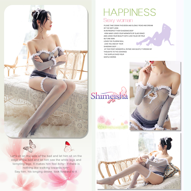 女僕角色扮演網衣!露肩一字領蕾絲滾邊三件組