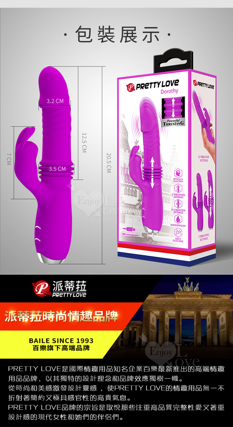 派蒂菈 ‧ Dorothy 多蘿西 多重精巧按摩棒﹝3伸縮+12強震+內外同樂+親膚硅膠+USB便捷充電﹞紫