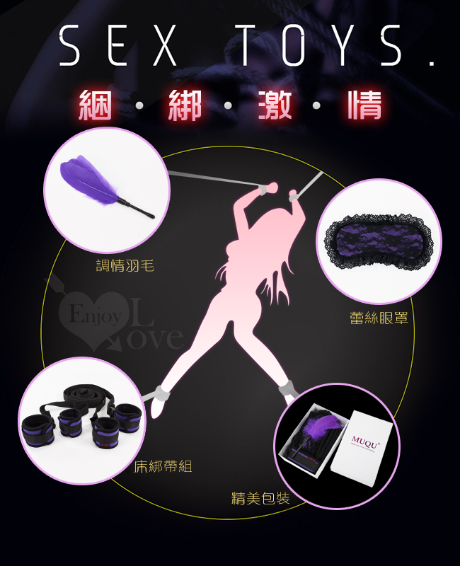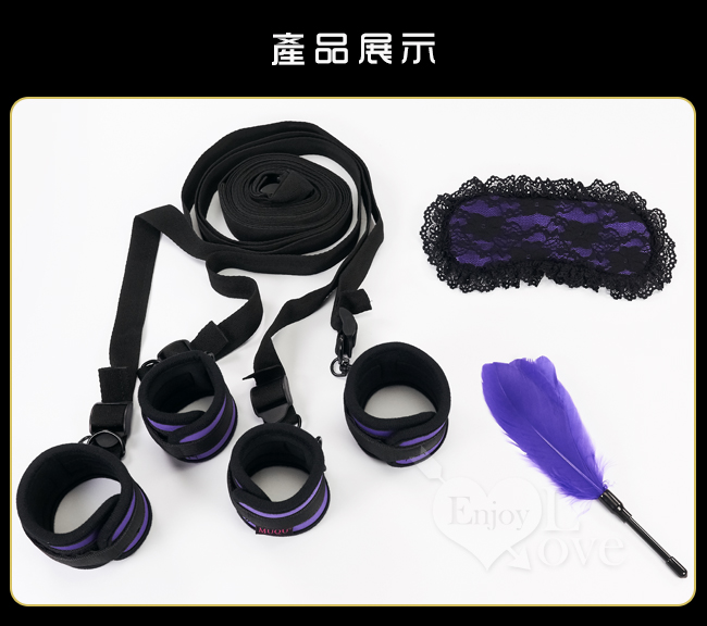 | MUQU 另類閨房遊戲 / 全方位床上捆綁帶組+眼罩+羽毛套裝