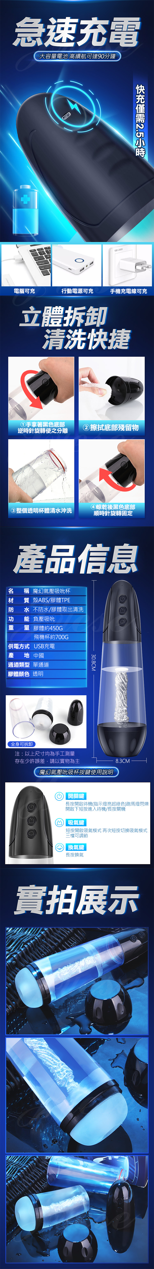 | 魔幻氣壓 3檔吮吸頻率緊致蜜道鍛鍊透明自慰