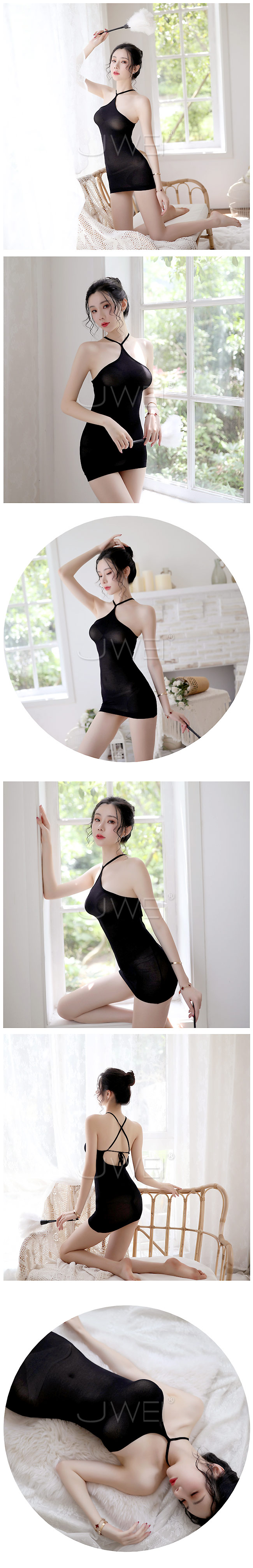| 窺探你心.性感絲質掛脖緊身包臀連身貓裝