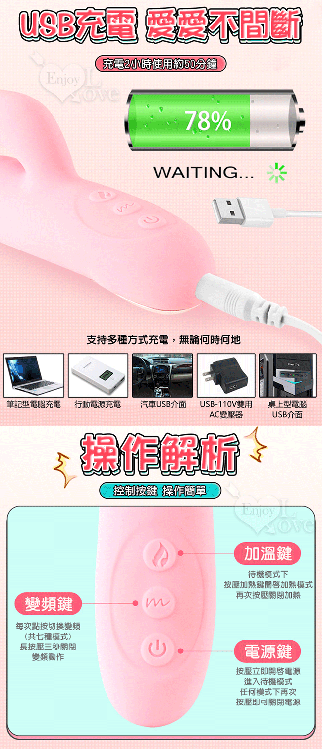 | ☆限量出清☆悅潮 ‧ 多功能仕女按摩棒﹝7頻伸縮搖擺及撩弄+智能加溫+USB便捷充電﹞