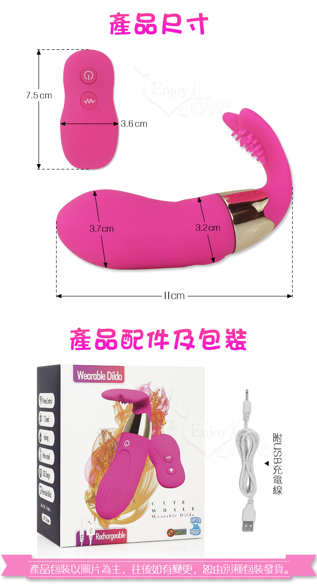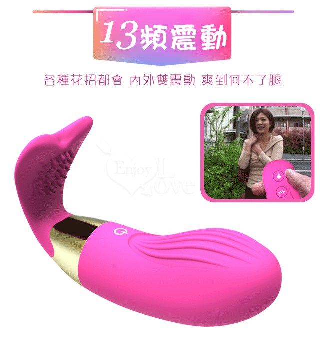 Whale 萌寵小鯨魚 ‧ 雙G點刺激13頻遙控按摩器﹝內外刺激+USB充電﹞掌控無線高潮