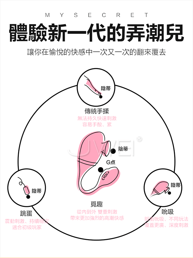 此款吸吮式震動跳蛋,能吸能震你想要的由我來滿足。C點加G點雙重組合一次體驗雙重快感,擁有7種吸吮模式與10種變頻震動多頻強震強力吸吮,酥麻快感蔓延全身神經。親膚材質讓您安心體驗每一次面紅耳赤的快樂夜晚~