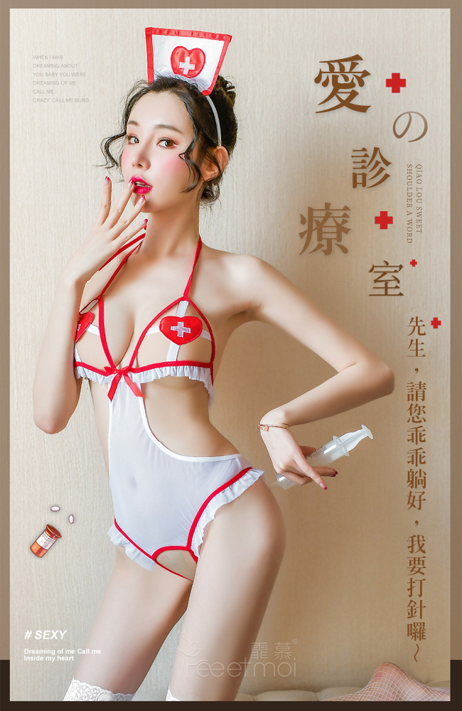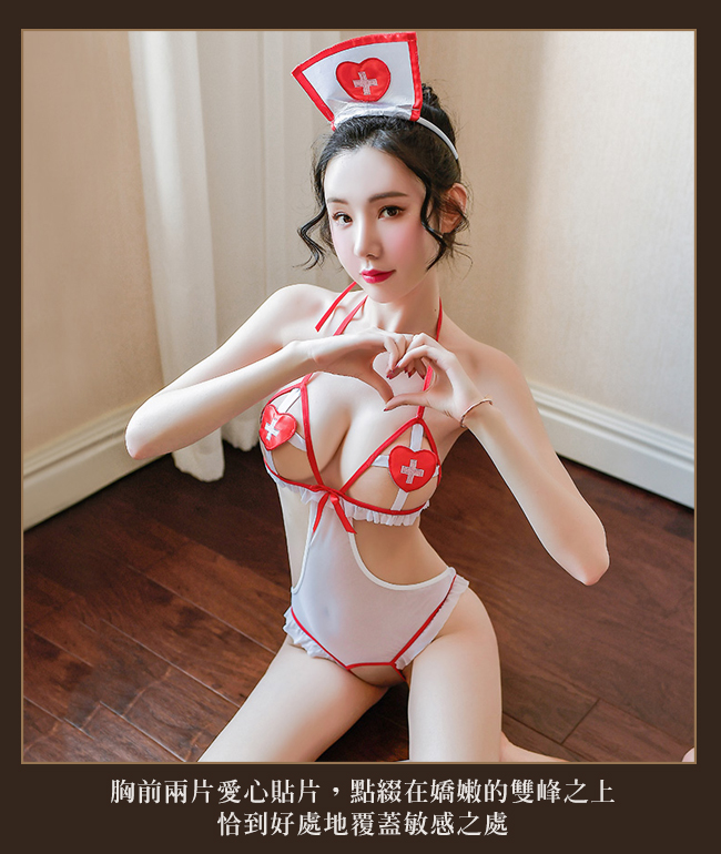 ►您現在的位置:首頁>護士角色扮演服!綁帶開襠愛心胸片連身衣 - 含網襪