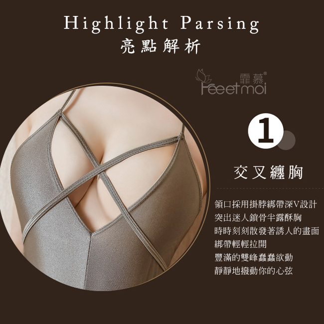 情趣連身衣!綑綁風情交叉纏胸高衩暗扣二件組﹝珠光灰﹞