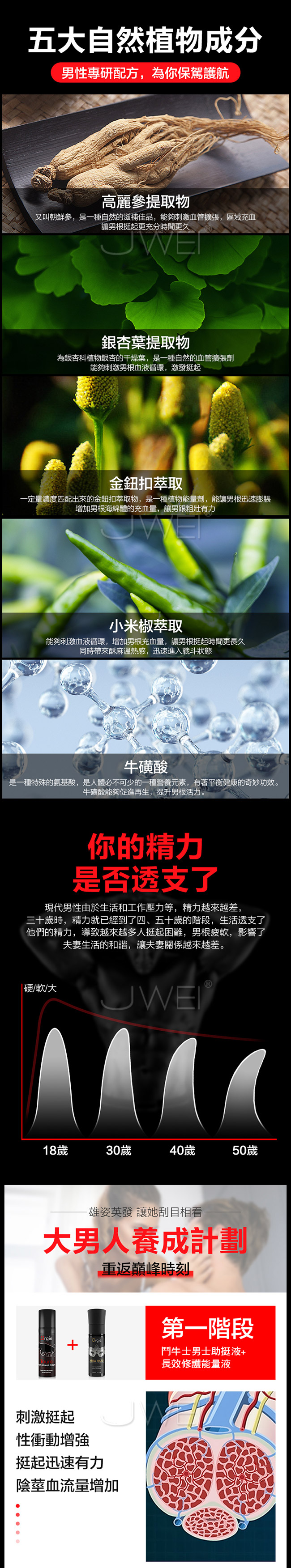還在擔心關鍵時刻無法從容硬對嘛??不用擔心我們來了鬥牛士XXXL男用賦活修護助挺液,讓您變成真男人喚醒您的男根潛力。採用古老滋養佳品高麗蔘提取物吸收好、滲透佳,採用自然植物成分黃金配比,刺激男根血液循環激發挺起增加海綿體充血量,讓他粗壯有力,用自然的力量守護男根。
