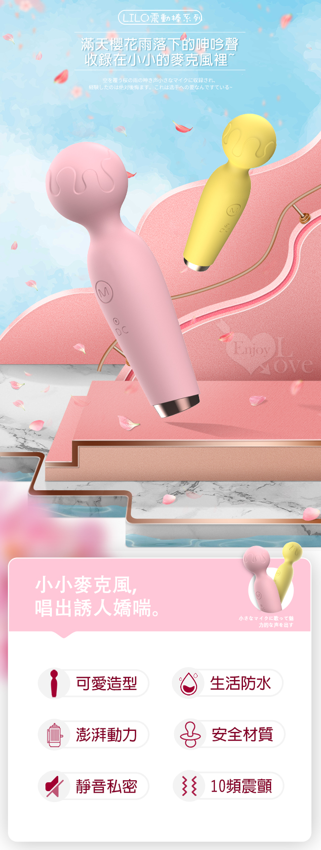 ►您現在的位置:首頁>LILO快樂樂章 ‧ 小麥克風AV按摩棒 - 檸檬黃/櫻花粉﹝高速10頻+安全硅膠+防水靜音+USB充電﹞