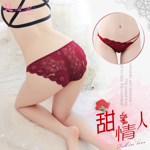 | 純情動人!緹花蕾絲透膚美型平角內褲﹝玫紅﹞