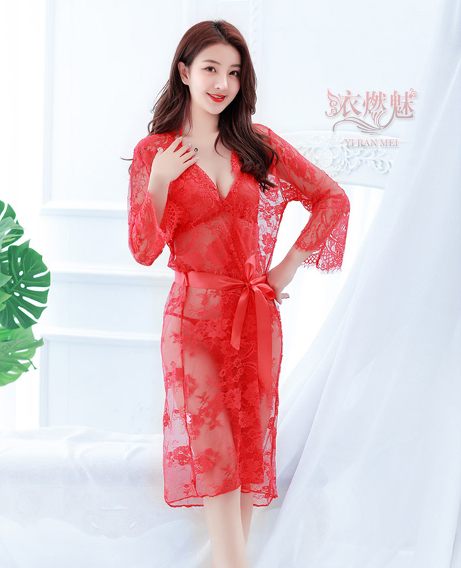 ►您現在的位置:首頁>《YIRAN MEI》水漾情迷!三點式輕透裸肌細膩蕾絲睡袍組﹝紅﹞