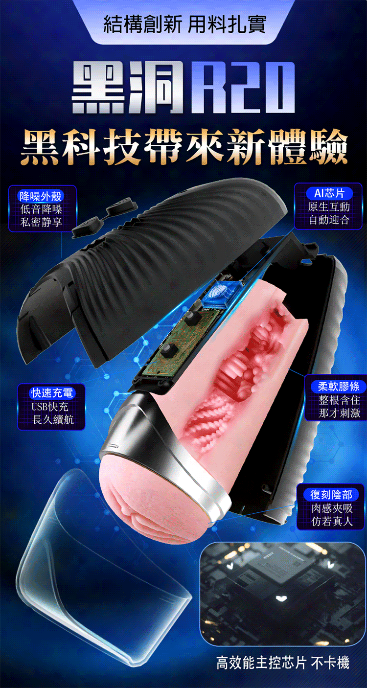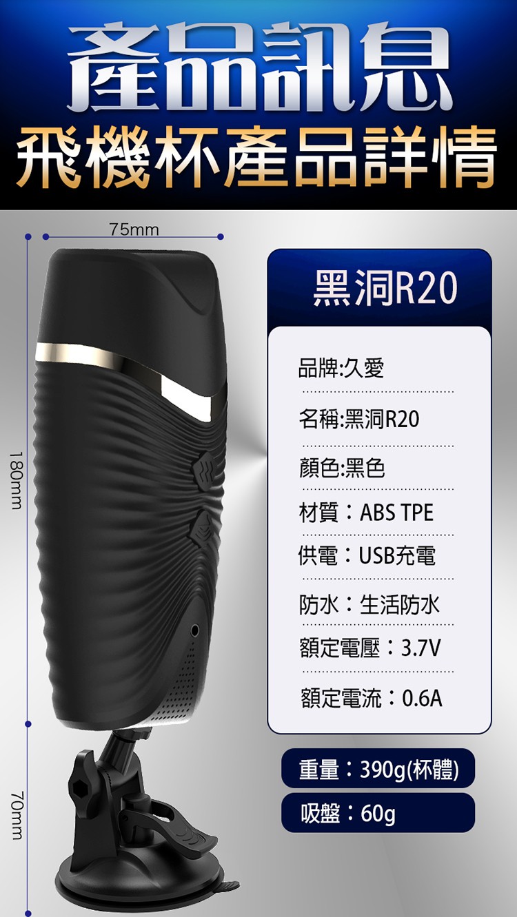 | 黑洞R20.智能變頻叫聲免提吸盤震動自慰炮杯