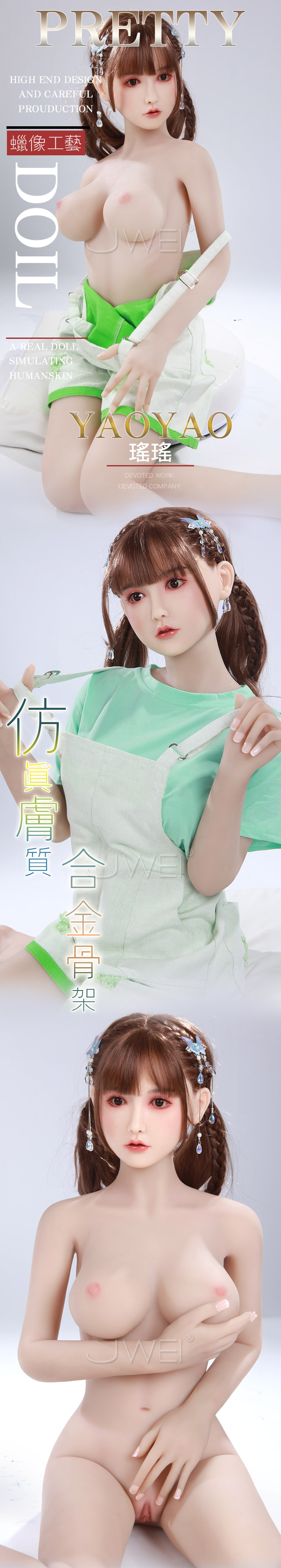 身高115cm的鄰家系女孩瑤瑤,全實體醫療級矽膠倒模,彈性極佳,按照真人黃金比例設計,內置不鏽鋼變形骨骼,可站立身軀,解鎖更多姿勢技巧。
