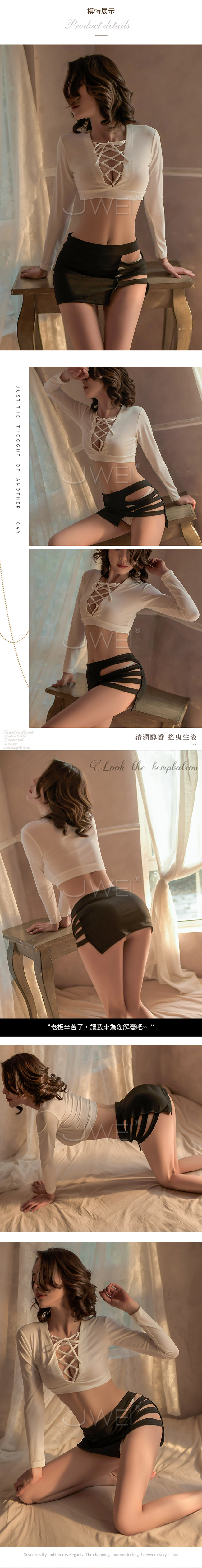 | 愛情嚮導.火辣鏤空繫帶OL套裝三件組(白色/黑色)