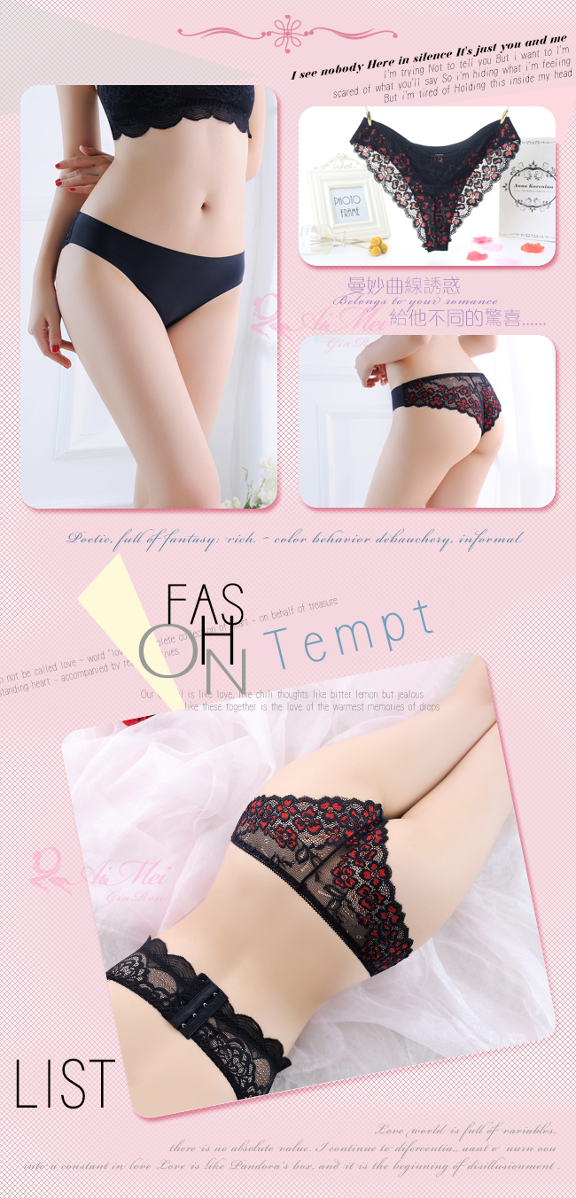 ►您現在的位置:首頁>寵愛迷戀!無痕蕾絲花瓣拼接冰絲三角褲﹝黑﹞