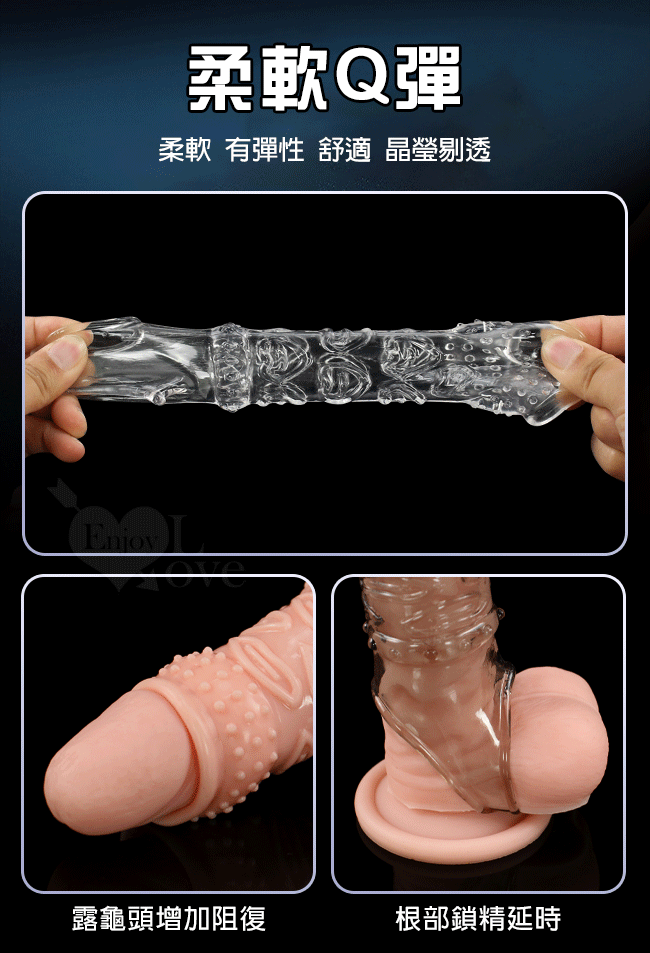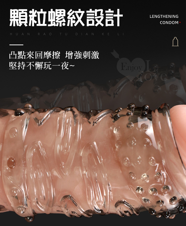►您現在的位置:首頁>Enjoy Love ‧ 久戰加強 顆粒螺紋刺激 增粗延時助性鎖精水晶套 - 肉感膚質﹝透明色﹞