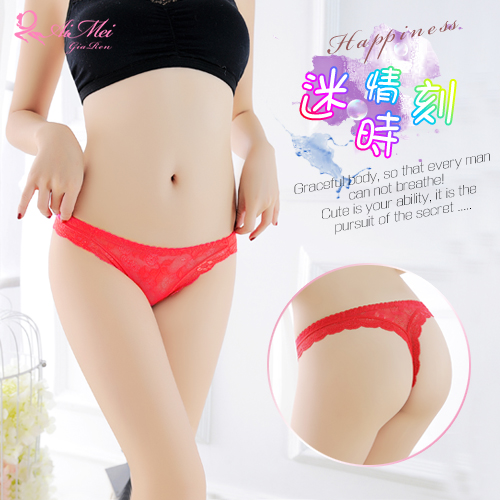| 紅白拚色蝴蝶結花邊寬帶纏繞翹臀丁字褲