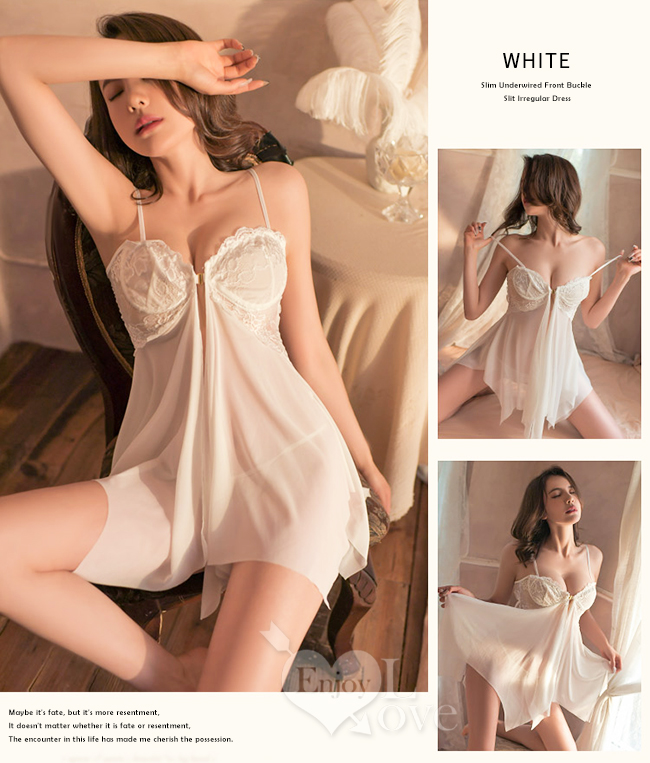 | 情趣睡衣!細帶鋼圈聚攏美胸前掛扣開襟不規則連身裙兩件組﹝白﹞