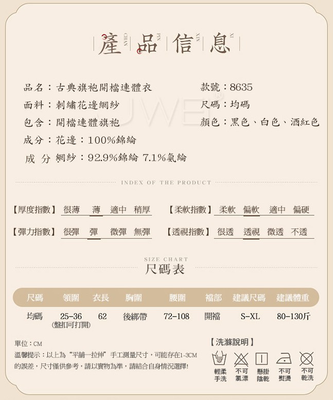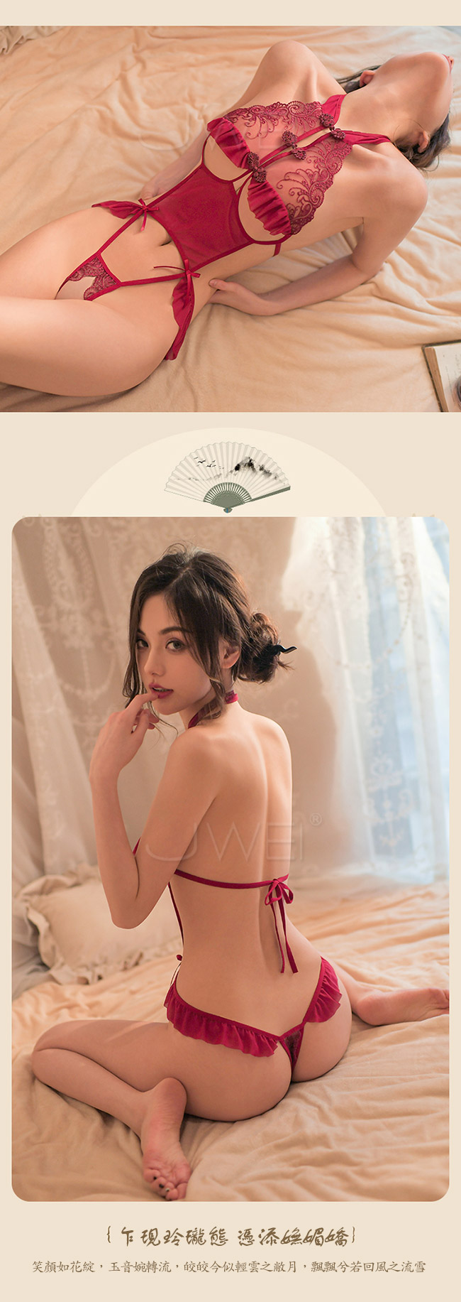 | 風韻佳人.古典旗袍刺繡花邊挖空露乳開襠露臀連體衣(紅色)