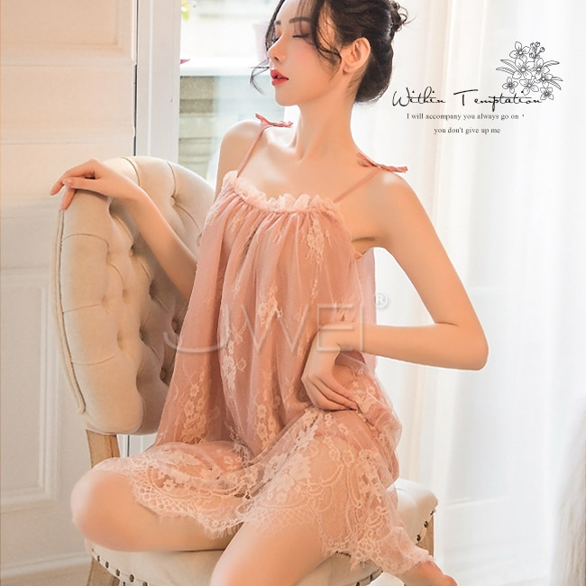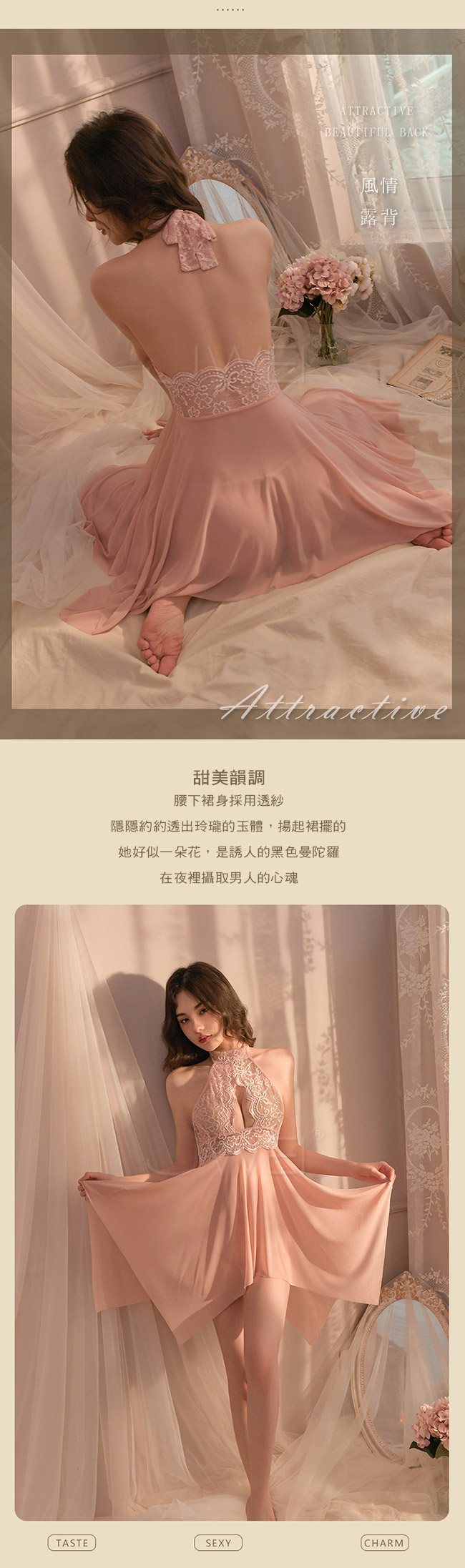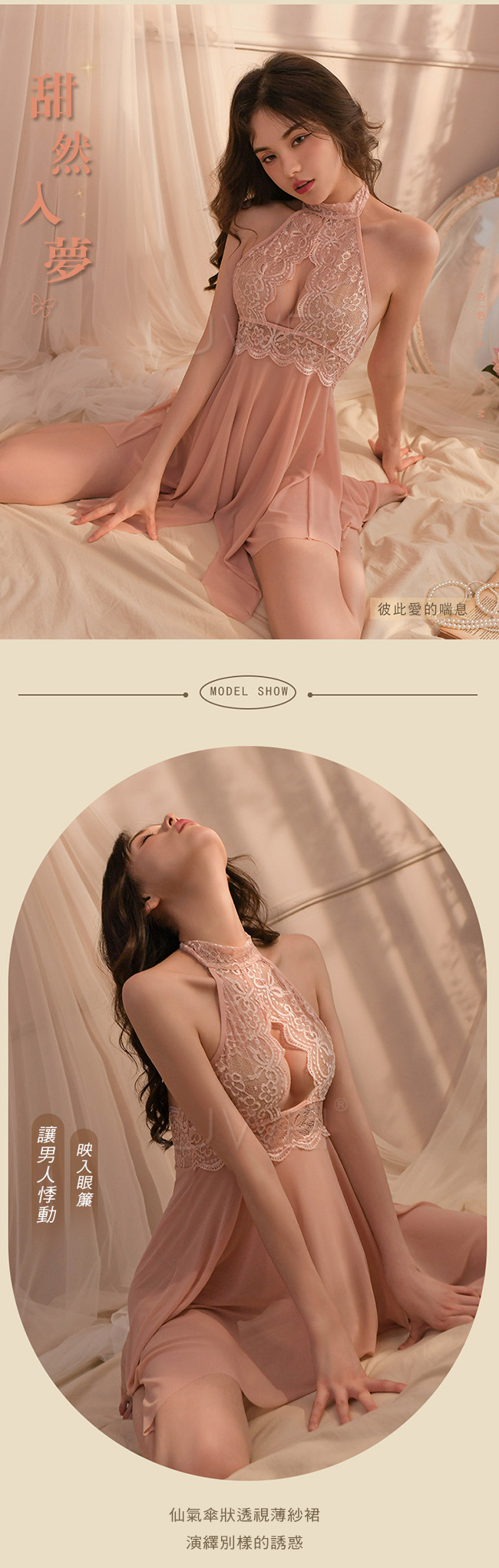 ►您現在的位置:首頁>甜美雅韻.性感鏤空柔紗透視蕾絲掛脖吊帶裙2件組(黑色)