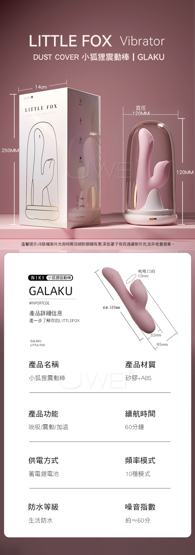 ■特色:防塵罩、藍光殺菌、10頻強震、10頻吮吸、智能恆溫、生活防水