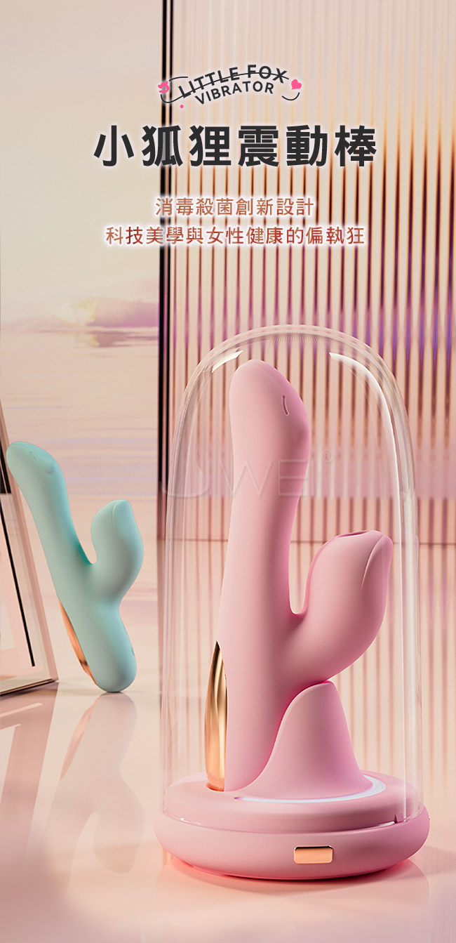 小狐狸震動棒,消毒殺菌創新設計,科技美學與女性健康的偏執狂,一鍵充電殺菌, 燈光亮起瞬間帶走污漬,防護罩氣體級密封 ,氣體灰塵細菌入侵阻擋;十頻動感強震,解鎖敏感地帶,縱享急速高潮;十頻動感裹吸,高分吻戲,三維快感體驗;智能恆溫,還原真實體溫,開機狀態下棒頭自動加溫至42度C,忘不了的溫馨體驗!