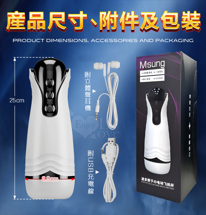 | Msung 波多野子 ‧ 加厚內膽Q彈顆粒刺激9頻雙震顫脈動爆發式語音叫聲自慰飛機杯-附耳機