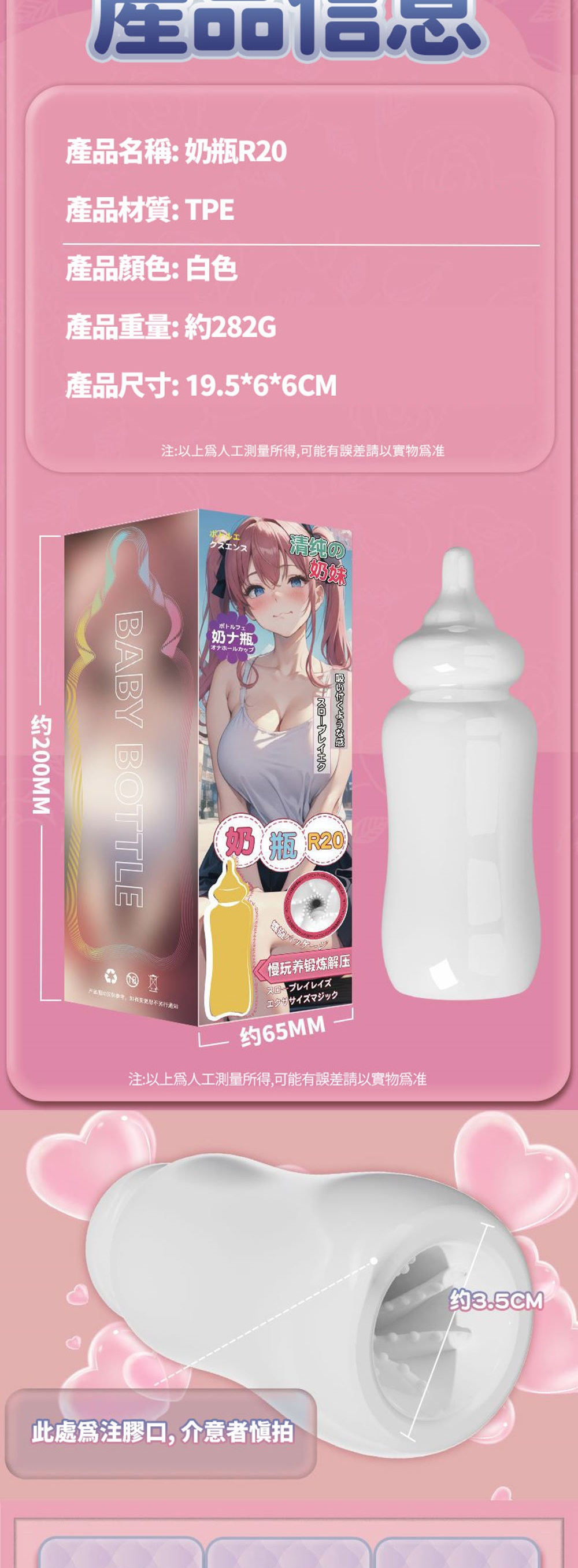 注意:請與潤滑液共用,並保存於陰涼處,欲重覆使用,用後清水沖洗。