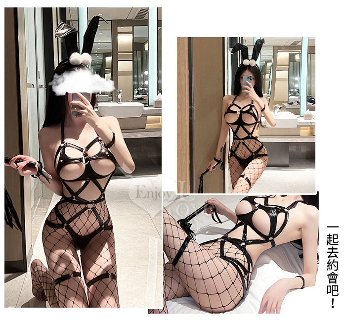 | 兔女郎角色扮演服!緊身束縛露乳大膽裸空含網襪五件式套裝