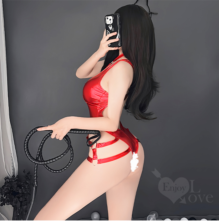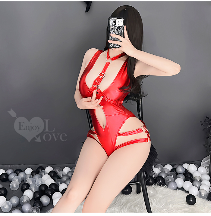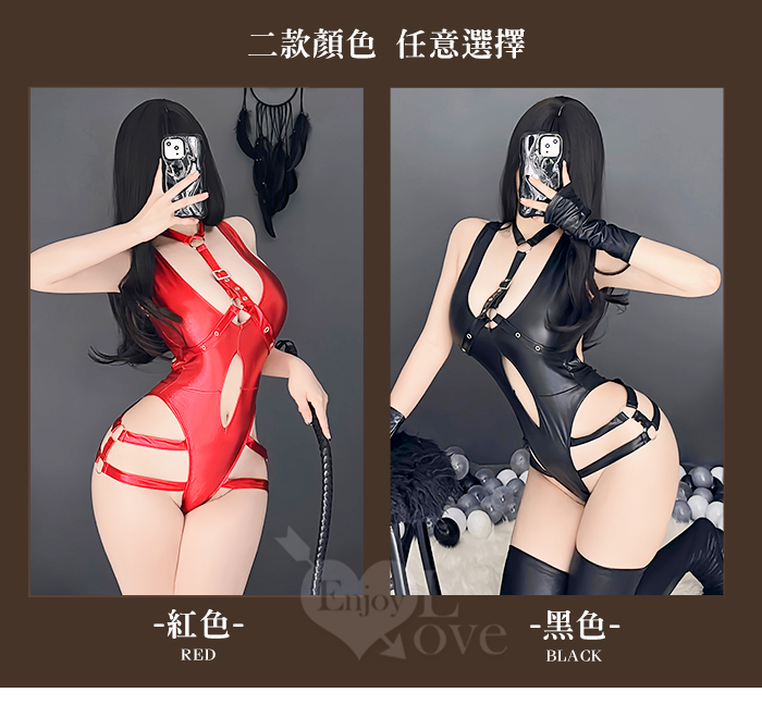 狂野連身衣!高質感霧面漆皮頸圈線條美臀開襠裝﹝黑﹞