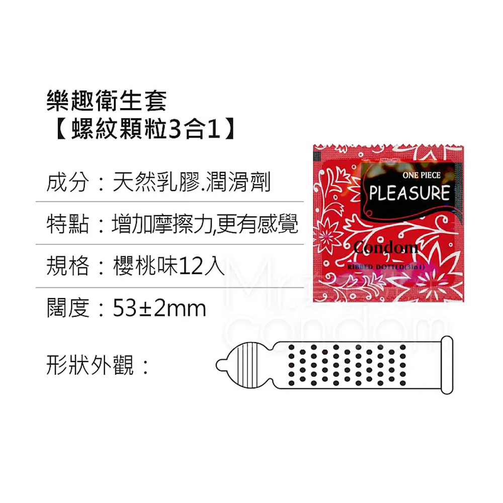 | 樂趣衛生套螺紋顆粒(3合1)櫻桃12入 M16