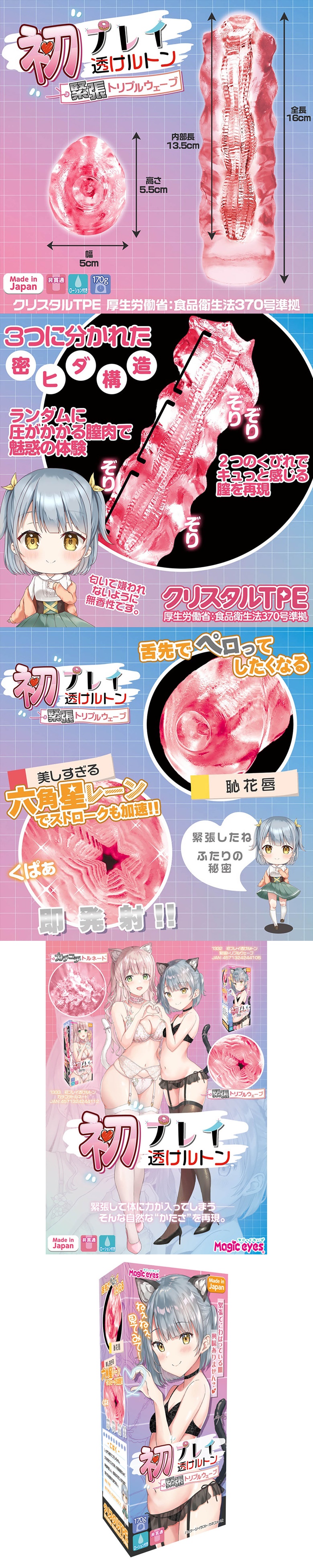 日本Magic eyes初次體驗透明激動的三重波浪男用自慰套