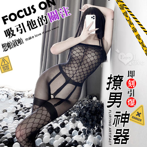 ►您現在的位置:首頁>絲襪連身衣!透視黑絲顯瘦菱格紋假式吊襪拚接開襠裝