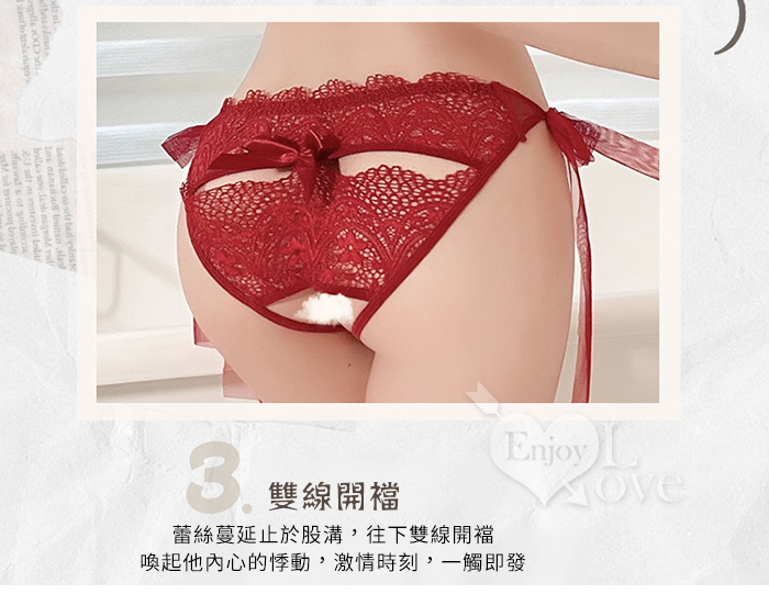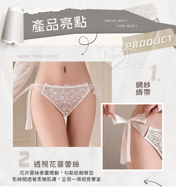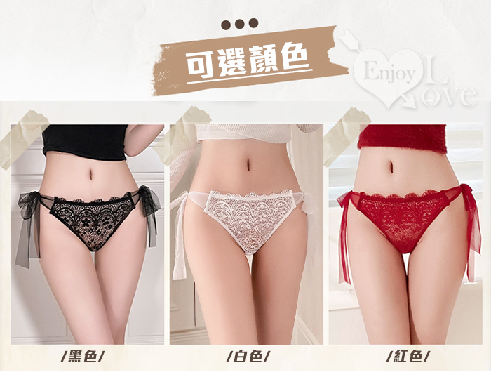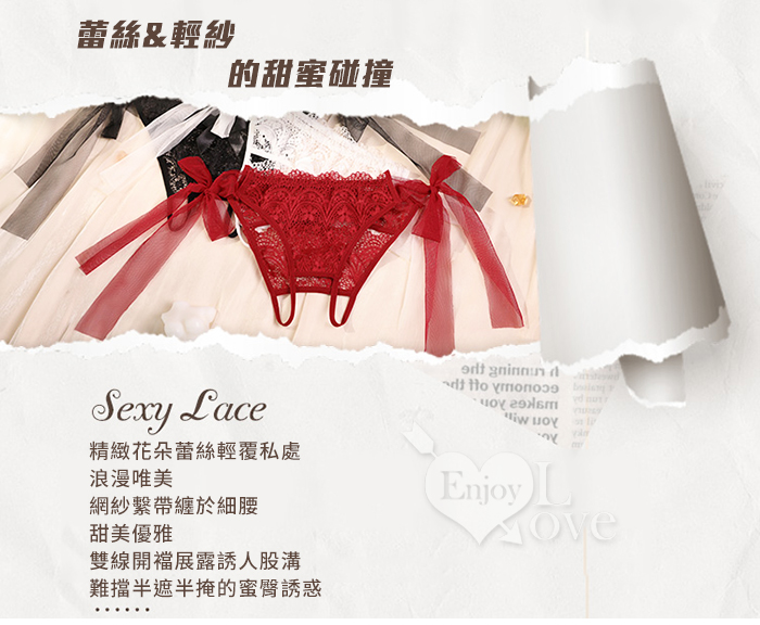 | 網紗側綁帶透視花蔓蕾絲心機開襠褲﹝白﹞
