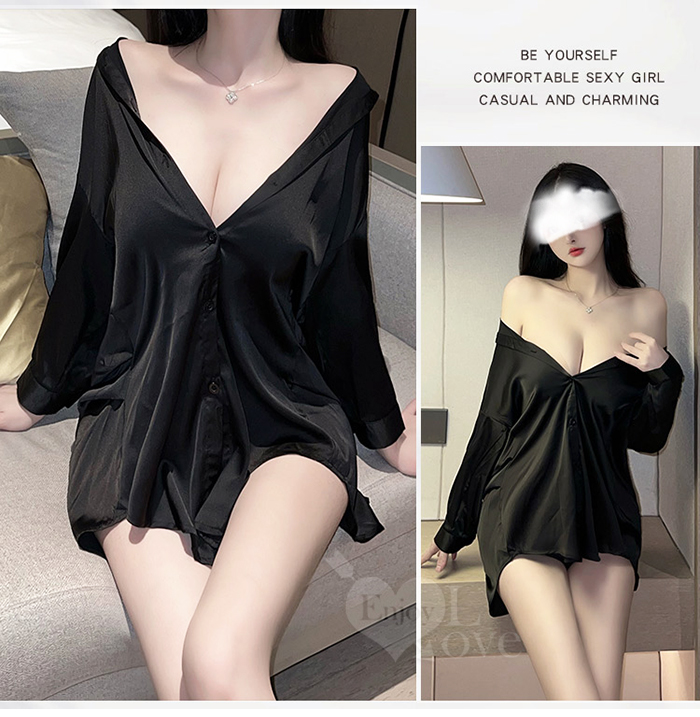 情趣睡衣!冰絲柔滑男友風前短後長性感襯衫兩件組﹝白﹞