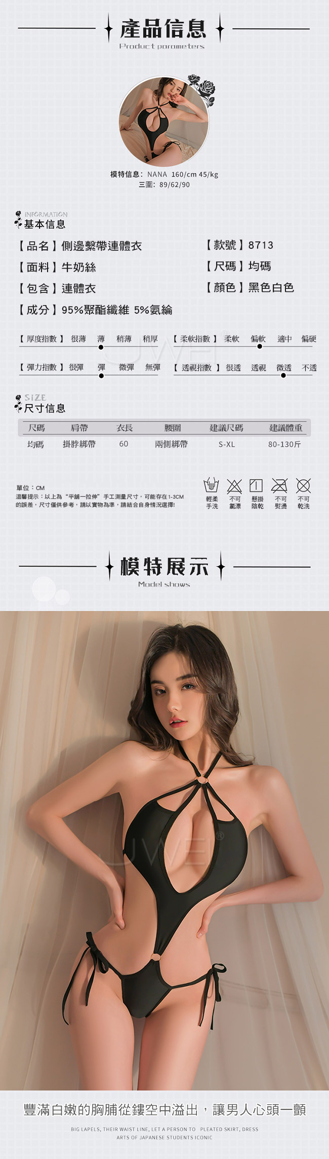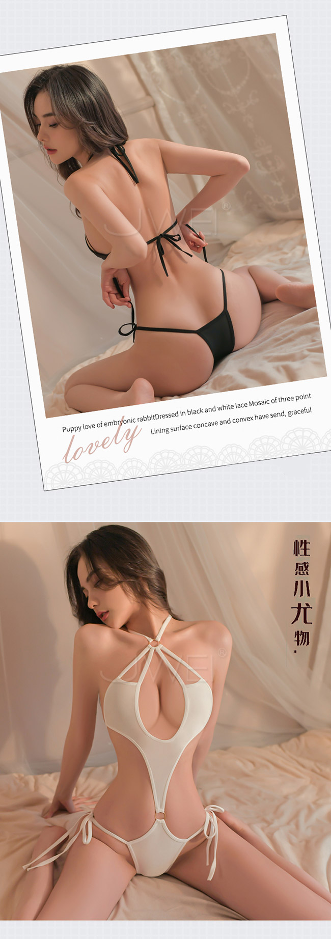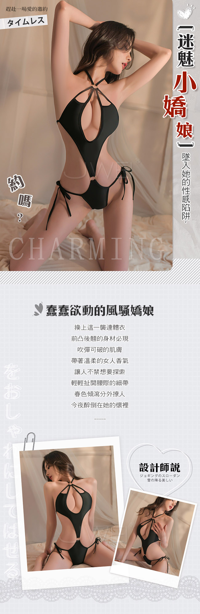 ◇◆迷魅小嬌娘.水滴露胸弧形漏腰側邊繫帶連體衣(白色)◆◇