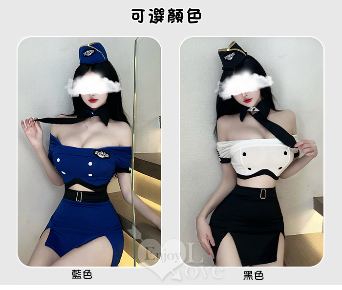 空姐角色扮演服!立體帽交叉美背短上衣性感包臀裙六件式套裝﹝白﹞