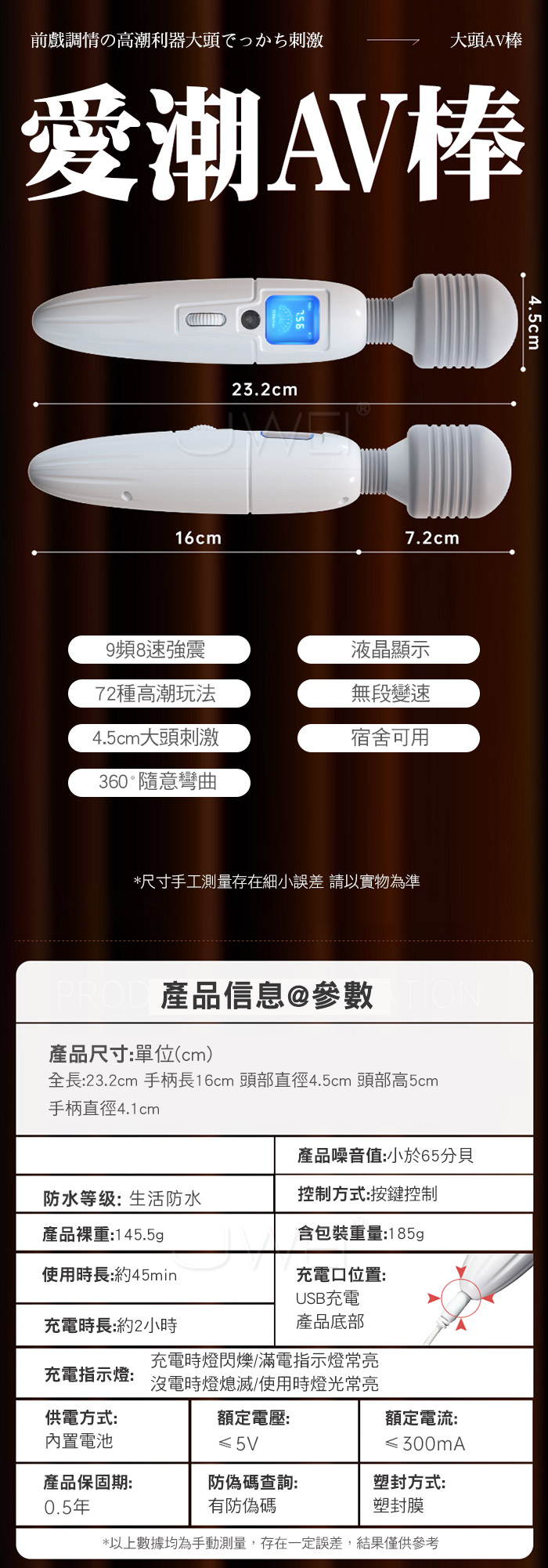 ■特色:無段變速、9頻8速強震 、頸部靈活龍骨裝置、低音設計