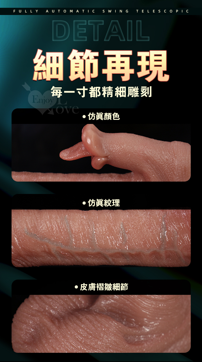 真肌狂屌 ‧ 無線遙控唇槍舌戰 伸縮震動高仿真肉感老二棒 - 大號