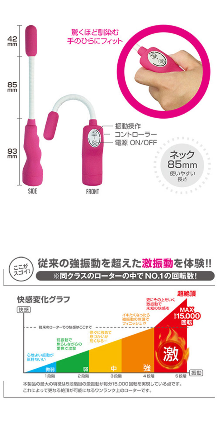 配備超越「強」的「Geki」模式,具有5級振動,每分鐘最高可達15,000轉! !